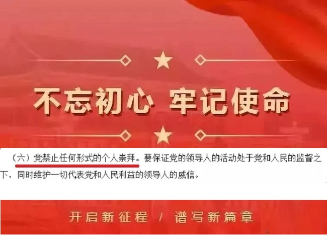 党章是党内“宪法”,对党内生活及党的建设具有至高无上的指导及规范作用。近年来胡锦涛同志多次强调全党同志尤其是党的领导机关领导干部要学习党章、遵守党章、贯彻党章、维护党章。因此,对党章中“党禁止任何形式的个人崇拜”的重要规定,理应以清醒的坚决的态度贯彻之,维护之。