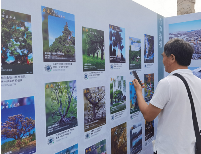 活动现场,或苍劲、或柔美的古树名木倩影照片吸引了不少市民的驻足。“这是我们正定有名的老槐树,有三百年历史了,就在隆兴寺门前。”一位正定市民指着名为“石家庄•隆兴寺卧槐”的图片说着 。在“有声海报”区域,一幅幅带有二维码的古树图片吸引着不少市民扫码聆听。