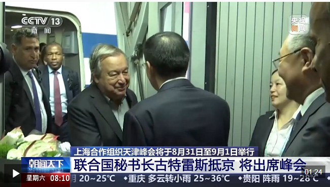 今天(30日)早晨5时50分许,联合国秘书长古特雷斯乘机抵达北京首都国际机场。他将出席在天津举行的2025年上海合作组织峰会。